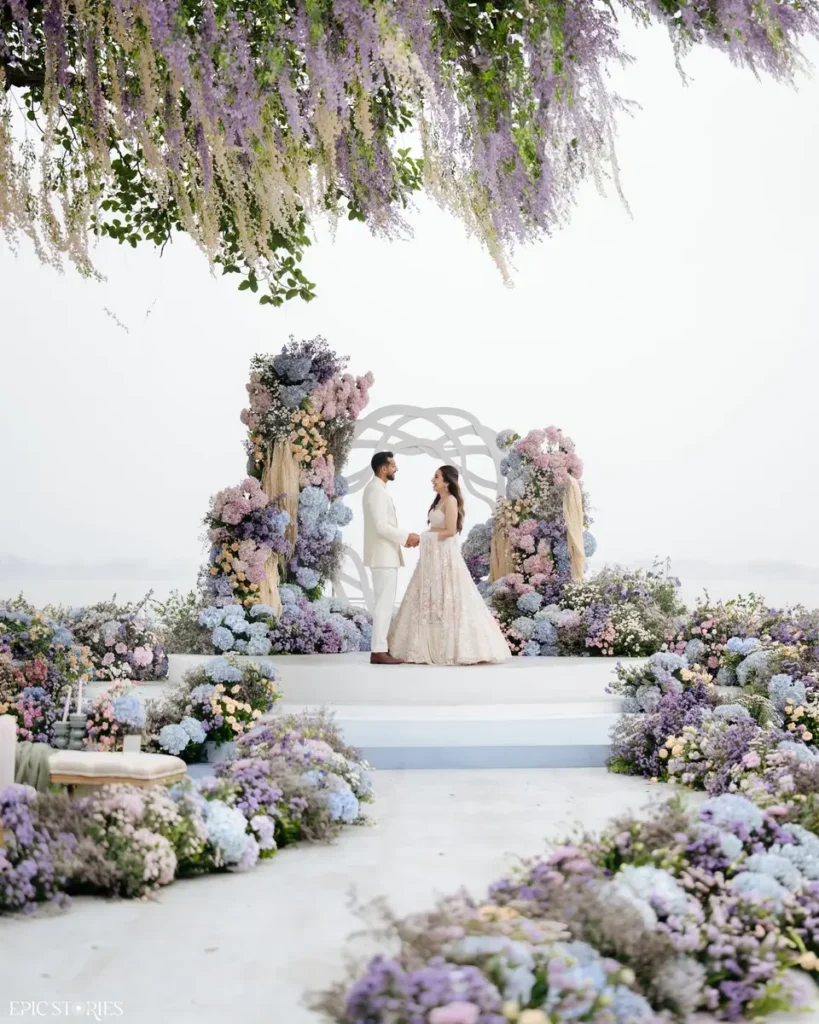 • Purple Themes (+1434% on Pinterest) and Purple Wedding Décor (+24% online searches) are adding depth and regal undertones. Doshi confirms, “We are seeing both ends of the purple spectrum trending, but in different ways. Soft shades like lavender and lilac are popular for daytime weddings while deeper tones like plum and amethyst work beautifully for evening receptions, adding richness and drama.”