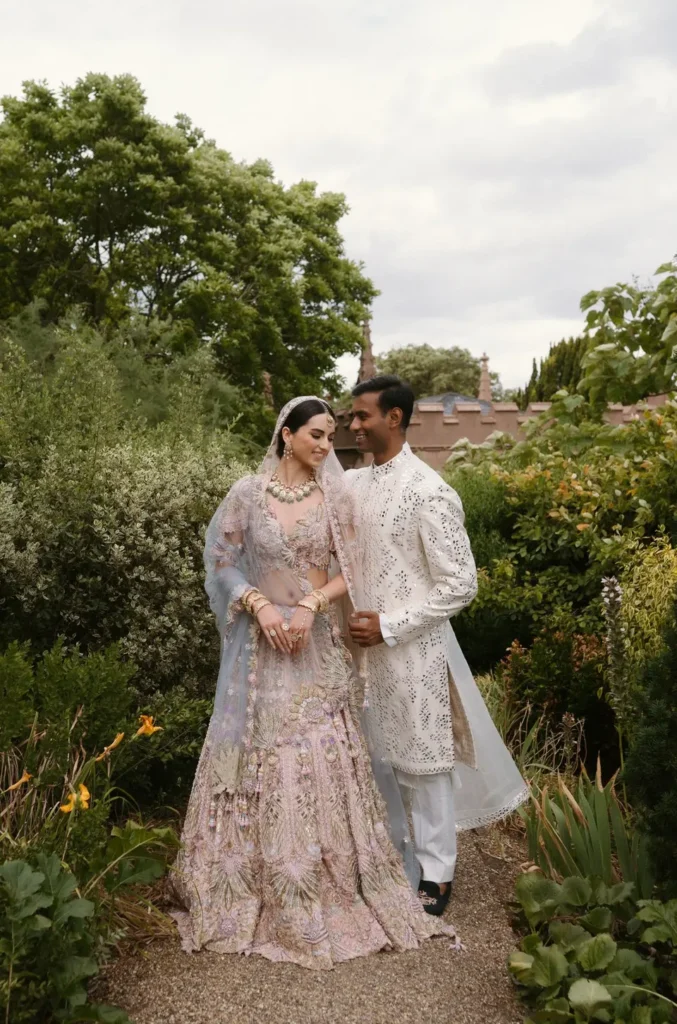 • The pastel effect continues for grooms as well. Expect powder pink bandhgalas, lavender kurtas, and champagne-toned wedding sherwanis paired with muted gemstone brooches or ivory safa designs